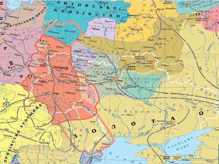 Внутрішня політика Данила • • • Шукав союзників – примирився з сусідами: Уг. , Пол. , Тевт. ор. , Пн. кн-ва Перемовини з папою Римським. Різні прагнення!!! Відбудовував міста, споруджував фортеці. Холм, Львів, Володимир, Кременець Заснував окрему Галицьку митрополію. Реорганізував військо Згода з Папою Римським Інокентієм ІV. 1253 р. Данило Галицький без особливих урочистостей коронувався в Дорогочині.