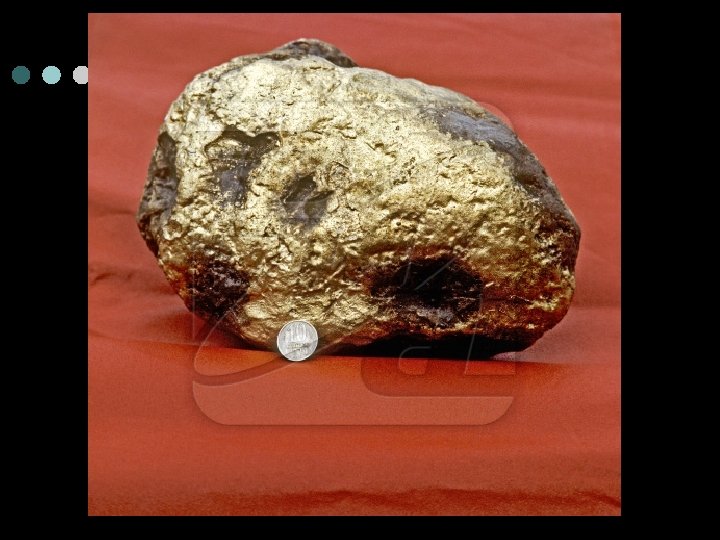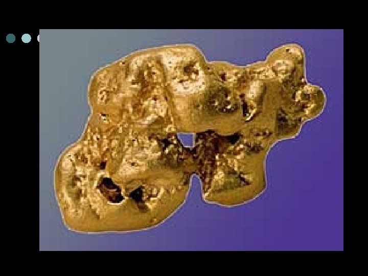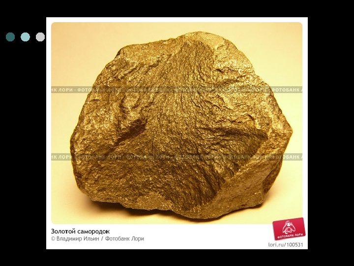 Малый круговорот золота ¢ ¢ Этот круговорот начинается с выветривания золотосодержащих пород (медно-никелевых, колчеданных, медно-цинковых и арсенопиритовых сульфидных руд) под воздействием температуры, кислорода, углекислого газа и воды. Этому способствуют и различные микроорганизмы, роль которых сводится к выщелачиванию золота из руд. В настоящее время известно около 40 минералов золота. В рудах оно в основном находится в свободном (самородном) состоянии. Химический состав самородного золота характеризуется его пробой, а также содержанием элементов-примесей. Преобладают месторождения средней (800 -899) и высокой (900 -950) пробы. Индивидуальные кусочки самородного металла (золотины) бывают разных форм: хорошо ограненные кристаллы, сростки кристаллов, дендриты, а также смешанные формы.