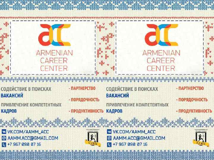О проекте: Кадровый центр «Armenian career center» создан с целью содействия в поиске вакансий для армянской молодежи и друзей, которые ощущают необходимость трудоустройства на территории Города Москвы, а также направлен на привлечение компетентных и высококвалифицированных кадров в организации и в компании, нуждающиеся в них.