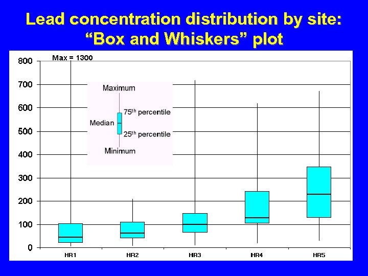 Lead concentration distribution by site: “Box and Whiskers” plot