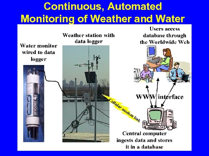 Question researchers/managers/ regulators/public might want to ask • Has is it been unusually hot for October? • How much did it rain last weekend? How big of storm is that? • How bad is the drought we are having? • What’s the water quality of the River? • What explains spatial and temporal variations in metal concentrations in the River? • Will building a mall cause flooding? • How are contaminants in sediment affecting biota? • What causes fish kills in the Summer? • Is the fish community becoming more diverse/abundant? If so, what is causing it?