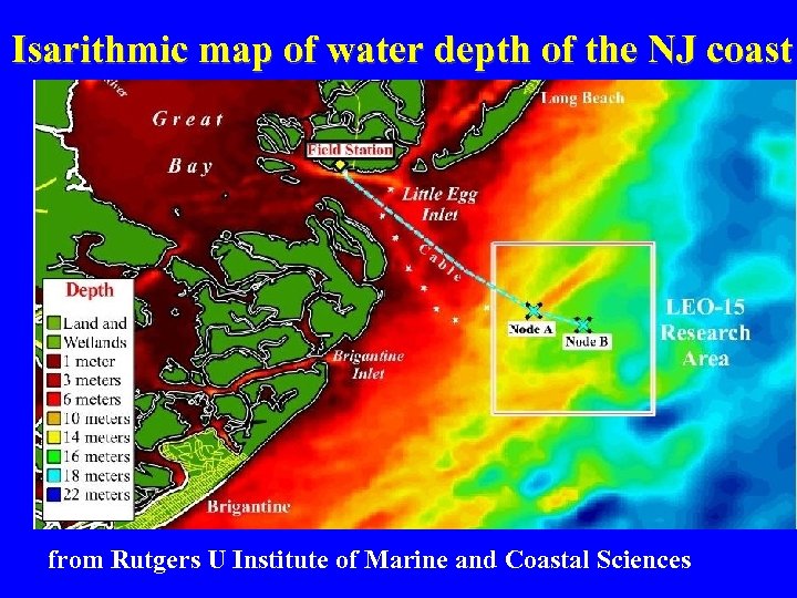 Isarithmic map of water depth of the NJ coast from Rutgers U Institute of Marine and Coastal Sciences