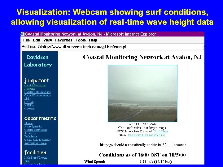 Visualization: Webcam showing surf conditions, allowing visualization of real-time wave height data