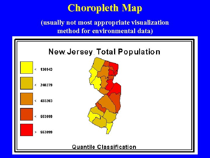 Choropleth Map (usually not most appropriate visualization method for environmental data)