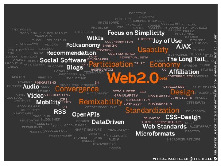 Web 2. 0 Features • RSS Feeds • Social Bookmarking (“Folksonomies”) – Tagging and Categorization • Rating & Recommendations • Blogging – Comments and Discussions • Rich User Interfaces (“AJAX”) – Close to desktop systems • Web Services