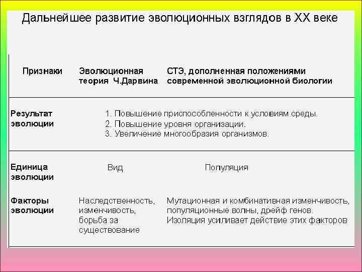 Дата Тема урока: СИНТЕТИЧЕСКАЯ ТЕОРИЯ ЭВОЛЮЦИИ