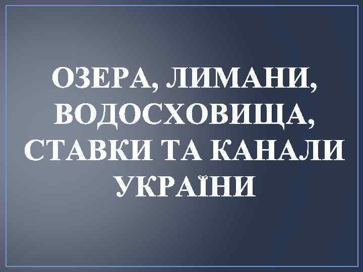 Позначте на контурній карті найбільші озера України Світязь – найглибше озеро в Україні(Волинь) Синевир – найбільше гірське озеро(Закарпатська обл. ) Сасик - найтепліше озеро (Крим, Евпаторія) Ялпгуг - найбільше озеро(р. Дунай в Одеській обл. ) Бребенескул - найвисокогірніше озеро (Закарпатська обл. ) та Каскад Дніпровських водосховищ з півночі на південь: Київське, Канівське, Кременчуцьке, Дніпродзержинське, Дніпровське, Каховське.