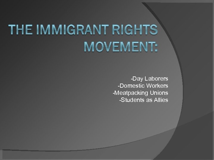 -Day Laborers -Domestic Workers -Meatpacking Unions -Students as Allies