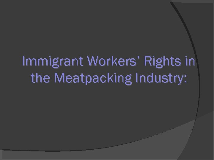 Immigrant Workers’ Rights in the Meatpacking Industry: Industry