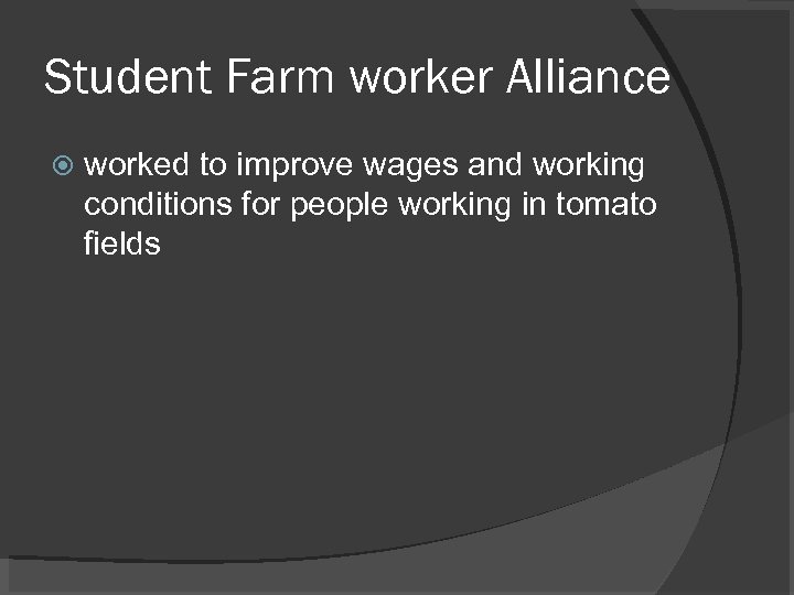Student Farm worker Alliance worked to improve wages and working conditions for people working in tomato fields