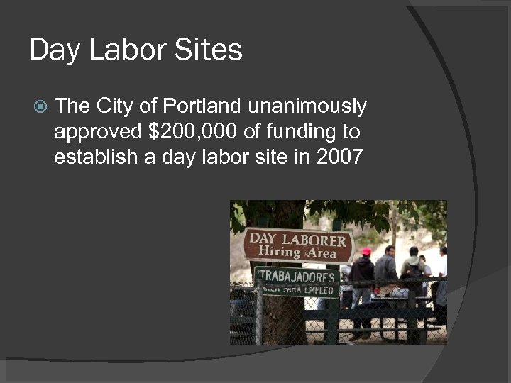 Day Labor Sites The City of Portland unanimously approved $200, 000 of funding to establish a day labor site in 2007