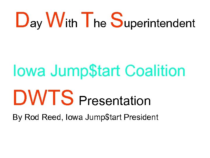 Day With The Superintendent Iowa Jump$tart Coalition DWTS Presentation By Rod Reed, Iowa Jump$tart President