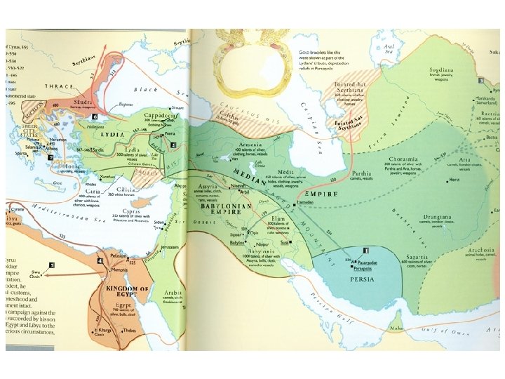 750 v. C. § Griekse renaissance: Archaïsch Griekenland Contacten met Nabije Oosten, Egypte: vele ontleningen, waaronder het alfabetschrift § Assyrische expansie 722 Israel vernietigd, 670 Egypte veroverd 612 v. C. § Val van Niniveh; Nieuw-Babylonisch rijk; Neboekadnessar 587 inname Jerusalem, einde van Juda – Babylonische ballingschap 550 v. C. § Iran: de Meden verdrongen door de Perzen Perzische veroveringen: 545 Lydië, 539 Babylon, 525 Egypte