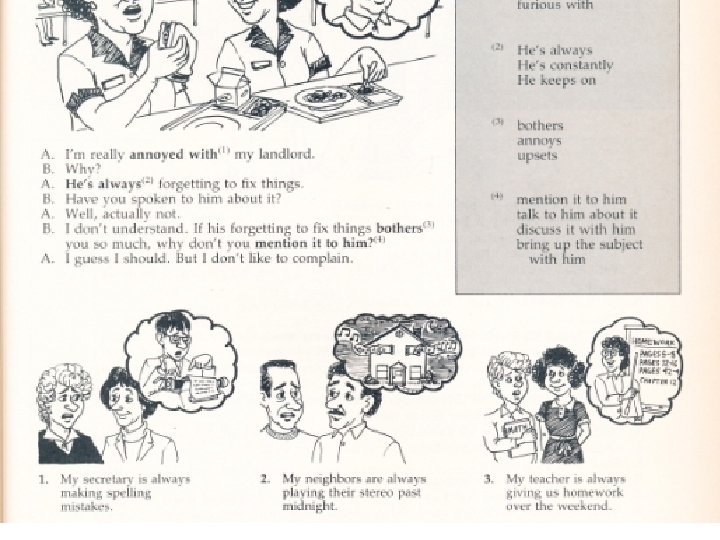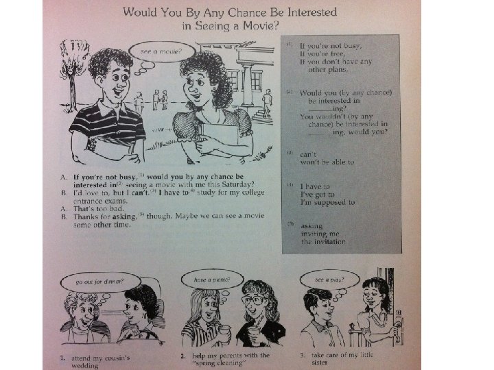 They need thousands of Expressions, Idioms and Phrases traffic jam lunch box by and large get along with put back set out on the day before yesterday How's things? If you don't mind, would you…? I'd rather not … I'd like to … If it were up to me, I'd … So, what do you think? What's the matter?