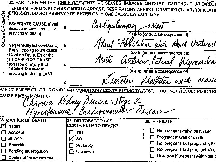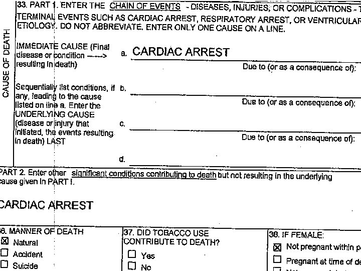 SPINAL CORD TRAUMA? !? !? ! JUST HOW IS THAT A “NATURAL” DEATH? l TURNS OUT THIS WAS FROM A GUNSHOT WOUND YEARS AGO, SO THIS IS A CLEARCUT AND OBVIOUS HOMICIDE, NOT A NATURAL DEATH! l