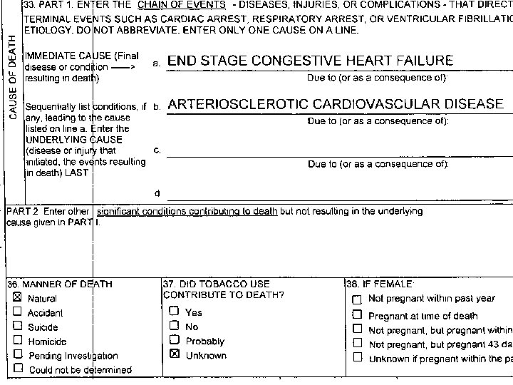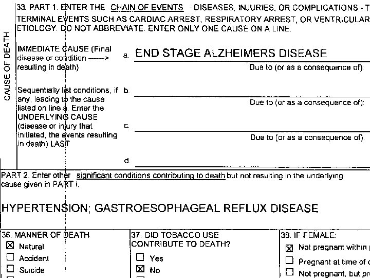 ACTUAL D. C. s l THESE WERE CULLED FROM CERTIFICATES COMING THROUGH OUR OFFICE WITH CREMATION REQUESTS OVER A BRIEF PERIOD l FAIRLY TYPICAL OF WHAT WE SEE DAILY l SOME HAVE SIGNIFICANT ISSUES