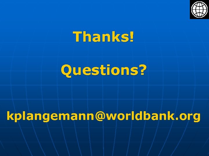 Thanks! Questions? kplangemann@worldbank. org