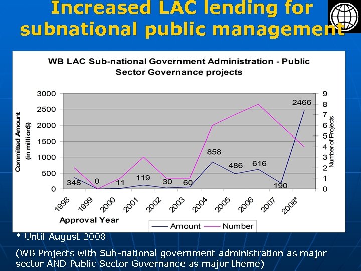 Increased LAC lending for subnational public management * Until August 2008 (WB Projects with Sub-national government administration as major sector AND Public Sector Governance as major theme)