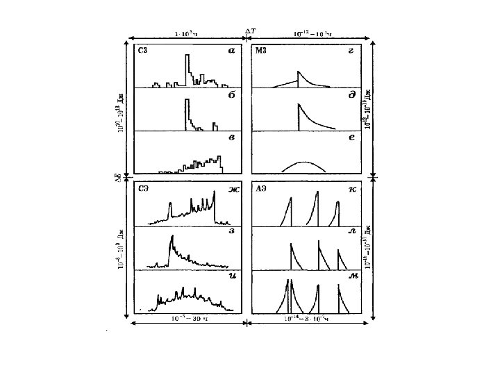 • Fig. 4 (a-l) Comparison of signals forms or emissions escape of envelope for various processes of wave radiation of (from) elastic potential energy: (a-c) - forms of set of earthquakes [Mogy, 1963]; (d-f) simulation of a seismic mode; (g-i) - types of seismic emission indignation; (j-l) - acoustic emission. It specifies cosmogony unity of physical mechanisms of behavior for the geophysical environment. Above the given data on records of seismic emission beside Ashkhabad (Turkmenia) on amplitude lay in a range 10 -8 - 10 -12 m/Hz and amplitude of lunar signals is in a range 10 -8 -5· 10 -11 m/Hz that testifies to a uniform physical picture of the specified wave fields.