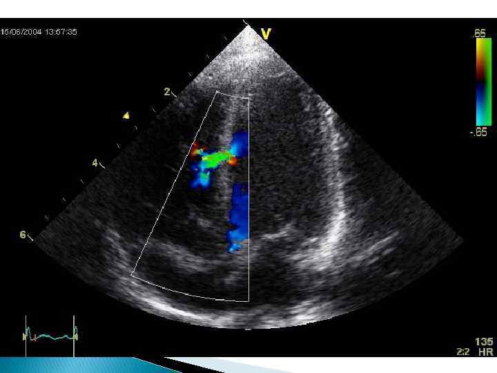 Средние и Большие Дефекты Инструментальная диагностика: Эхокардиографическое исследование дает исчерпывающую информацию о наличии дефектов в перегородке. Ребенок – 3 года. Диагноз врожденный порок сердца, дефект межжелудочковои перегородки В средней трети мышечной части перегородки лоцируется дефект (VSD) диаметром 6 мм Умеренное увеличение левого желудочка (LV) с незначительном гипертрофиеи его стенок Ребенок – 2 года. Диагноз врожденный порок сердца, дефект межжелудочковои перегородки Модифицированная 4 камерная позиция Апикальным доступ Лоцируется высокии мем-бранозныи ДМЖП (VSD) диаметром 12 мм с фиброзными краями