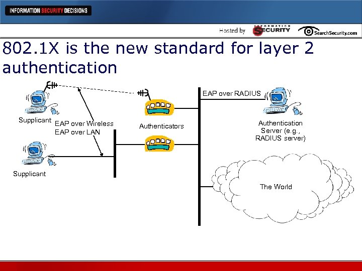 802. 1 X is the new standard for layer 2 authentication EAP over RADIUS Supplicant EAP over Wireless EAP over LAN Authenticators Authentication Server (e. g. , RADIUS server) Supplicant The World