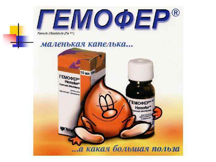 ЛЕЧЕНИЕ АНЕМИИ ПРЕПАРАТАМИ ЖЕЛЕЗА n n Терапия должна проводиться преимущественно препаратами железа для перорального приема Детям раннего возраста предпочтительно назначение железосодержащих препаратов в жидкой форме (гемофер, мальтофер, актиферрин, феррум лек)