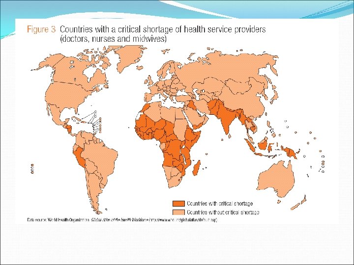 Key Health System Issues Critical shortage of health service providers But not sure of the numbers (3 doctors/1 nurse) External and internal brain drain (rural & donor) Urban/rural discrepencies Increasing reliance on paramedicals and ‚ward boys‘ Weak regulatory framework Limited registration of health facilities and providers with lack of regulatory mechanisms Professional groups weak influence on members Corruption Political interference in transfers and postings Private medical schools proliferating without transparent processes