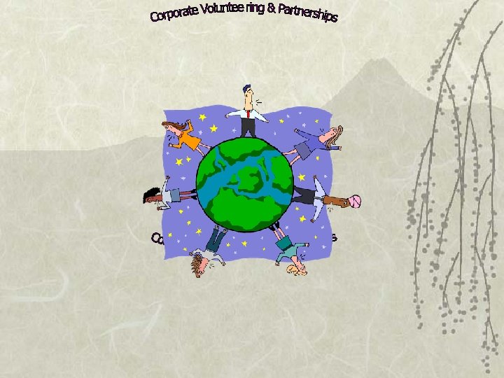 Definition of Terms Ø Volunteer "any relatively uncoerced work intended to help without primary/immediate thought of financial gain". Ø Employee Volunteer Program (EVP’s) Usually bottom up employee led initiatives with the buy in of senior managers. Ø Employee Volunteers Paid employees of a company who are involved in some form of volunteer activity. Ø Partnerships Agreements between corporate body and community/nonprofit/NGO or local government department. Usually have an exit date and are more complex, longer ranging programs than EVP’s. CEO or top down management driven.