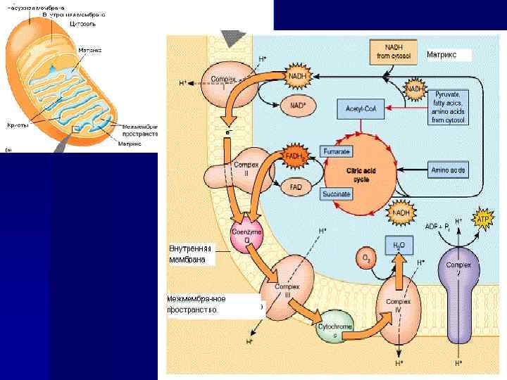 Окислительное фосфорилирование сопряжено с рядом процессов, протекающих в матриксе митохондрий цикл Кребса:
