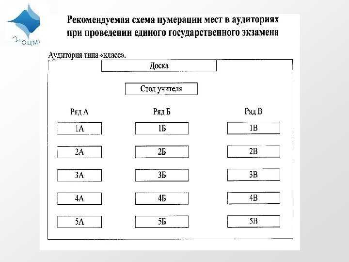 – – – Получить от организаторов в ППЭ или по спискам распределения, вывешенным на информационном стенде информацию об аудитории, в которую распределен участник ЕГЭ. Пройти в аудиторию согласно списку распределения. В аудитории предъявить организатору документ, удостоверяющий личность, занять место согласно распределению. Получить от организаторов черновики и запечатанный экзаменационный комплект с вложенными в них контрольно-измерительными материалами (КИМ), бланком регистрации, бланками ответов № 1 и № 2. По указанию организаторов вскрыть экзаменационный комплект. Проверить количество бланков ЕГЭ и КИМ и отсутствие в них брака или некомплектности.