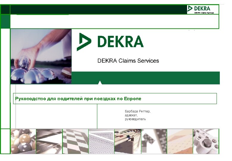 . DEKRA Claims Services Руководство для водителей при поездках по Европе Барбара Риттер, адвокат, руководитель 0 09/2003 1