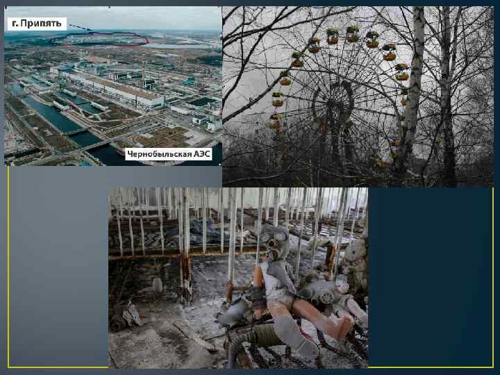 Чернобыльская катастрофа и ликвидация ее последствий • 26 апреля 1986 года на 4 -м энергоблоке Чернобыльской АЭС произошел взрыв, который полностью разрушил реактор. В результате аварии произошел выброс радиоактивных веществ, в том числе изотопов Урана, Плутония, Йода-131 (период полураспада 8 дней), Цезия-134 (период полураспада 2 года), Цезия-137 (период полураспада 33 года), Стронция-90 (период полураспада 28 лет). Положение ухудшалось тем, что в разрушенном реакторе продолжались неконтролируемые ядерные и химические (от горения запасов графита) реакции с выделением тепла, с извержением из разлома в течение многих дней продуктов горения высокорадиоактивных элементов и заражением ими больших территорий. Остановить активное извержение радиоактивных веществ из разрушенного реактора удалось лишь к концу мая 1986 года ценой массового облучения тысяч ликвидаторов. • Радиоактивное облако от аварии прошло над европейской частью СССР, Восточной Европой и Скандинавией. Примерно 60 % радиоактивных осадков выпало на территории Белоруссии. Около 200 000 человек было эвакуировано из зон, оказались загрязненными вследствие аварии. Выброс привел к гибели деревьев, что росли рядом с АЭС на площади около 10 км 2. • После оценки масштабов радиоактивного загрязнения стало понятно, что необходимо эвакуировать город Припять, который и был осуществлен 27 апреля. В первые дни после аварии было эвакуировано население 10 -километровой зоны. В последующие дни было эвакуировано население других населенных пунктов 30 -километровой зоны. • В результате аварии из сельскохозяйственного оборота было выведено около 5 млн. га земель, вокруг АЭС создана 30 -километровая зона отчуждения, уничтожены и захоронены (закопаны тяжелой техникой) сотни мелких населенных пунктов. • Загрязнению подверглось более 200 000 км 2, примерно 70 % — на территории Белоруссии, России и Украины.