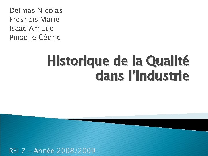 Delmas Nicolas Fresnais Marie Isaac Arnaud Pinsolle Cédric Historique de la Qualité dans l’Industrie RSI 7 – Année 2008/2009