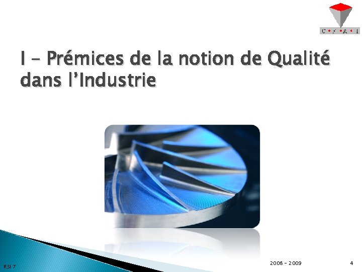 I – Prémices de la notion de Qualité dans l’Industrie RSI 7 2008 - 2009 4