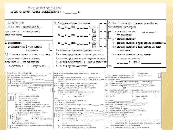 УЧЁТНО-СТАТИСТИЧЕСКАЯ КАРТОЧКА ДЛЯ ДЕЛ ОБ АДМИНИСТРАТИВНЫХ ПРАВОНАРУШЕНИЯХ (ФОРМА № 7 Р) По делу об административном правонарушении заводится учётно-статистическая карточка формы № 7 р на каждое привлеченное лицо; Регистрация в алфавитном указателе формы № 7 -а также ведётся на каждое привлеченное лицо.