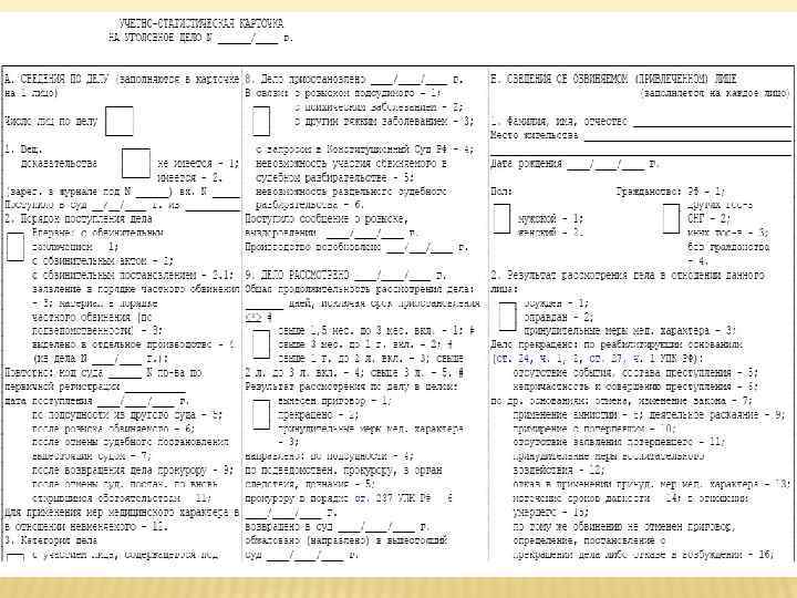 УЧЁТНО-СТАТИСТИЧЕСКОЙ КАРТОЧКИ ДЛЯ УГОЛОВНЫХ ДЕЛ (ФОРМА № 5 Р)