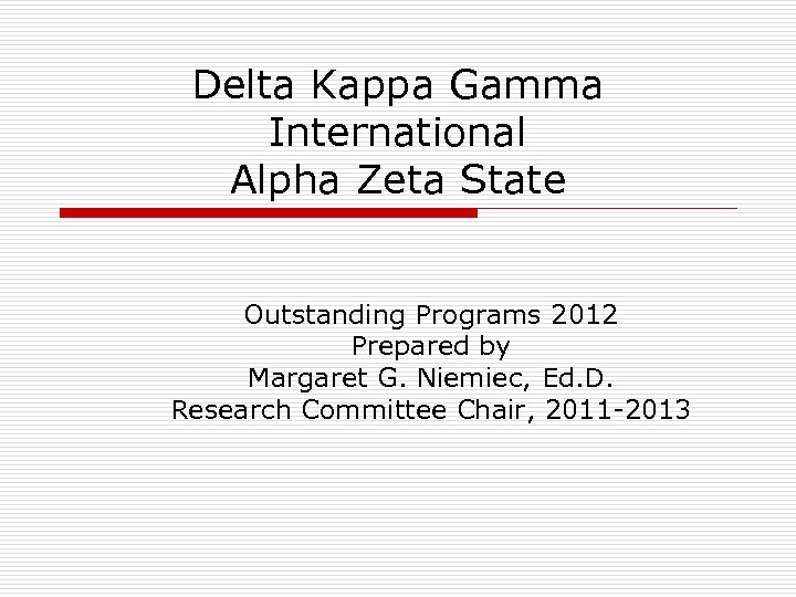 Delta Kappa Gamma International Alpha Zeta State Outstanding Programs 2012 Prepared by Margaret G. Niemiec, Ed. D. Research Committee Chair, 2011 -2013