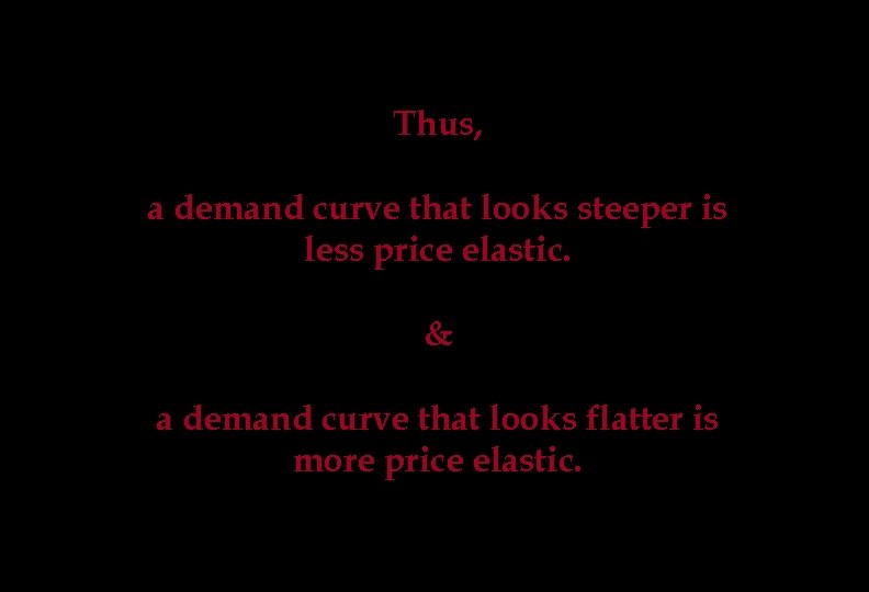 Thus, a demand curve that looks steeper is less price elastic. & a demand curve that looks flatter is more price elastic.