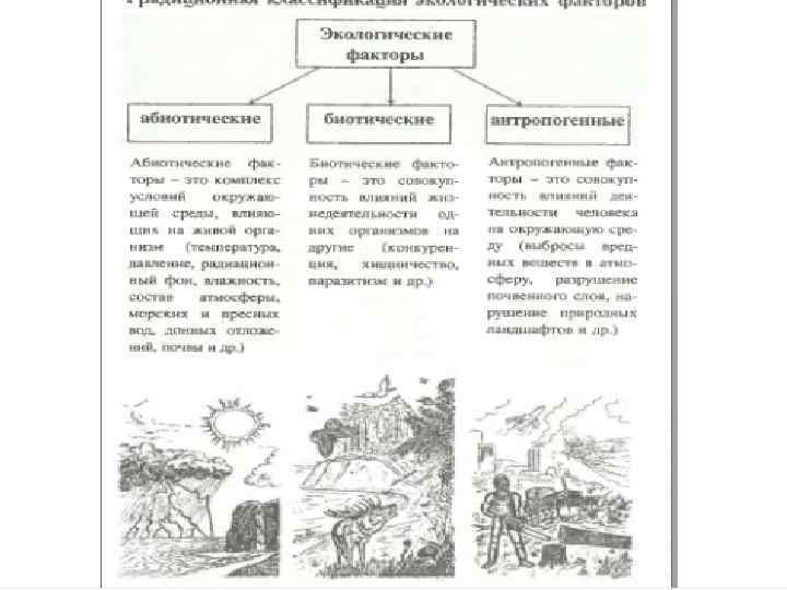 • Среда каждого организма. слагается из множества элементов неорганической и органической природы и элементов, привносимых человеком в результате его хозяйственной деятельности. • Элементы среды, воздействующие на живой организм, называются экологическими факторами.
