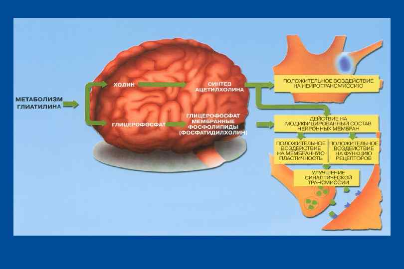 Исследования Глиатилина l Обобщенный анализ результатов 13 клинических исследований у больных с когнитивными нарушениями (Parnetti L. , 2001); Патология: сосудистая деменция, БОЛЕЗНЬ АЛЬЦГЕЙМЕРА; Количество пациентов: 4054 человек; Эффективность: высокая в терапии когнитивных расстройств, особенно в отношении памяти и внимания по сравнению с контрольной группой. l В ГВКГ им. Н. Н. Бурденко (Яковлев В. А. с соавт. 2000) – 44 пациета с дисциркуляторной энцефалопатией, с деменцией Альгеймеровского типа, с токсической (алкогольной) энцефалопатией Эффективность: выраженное улучшение состояноя в 72, 7% случаев l В Вмед. А (Одинак М. М. , Емелин А. Ю. , 2007) - 20 пациентов с когнитивными нарушениями сосудистого генеза; Эффетивность: достоверное улучшение по ряду нейропсихологических параметров l В других открытых клинических исследованиях в России (Новосибирск, Екатеринбург, Саратов) количество пациентов 948. l Безопасность применения препарата ГЛИАТИЛИН изучалась в 43 исследованиях (12949 пациентов). Побочные эффекты регистрировались в 0, 0 – 2, 14%% случаев в виде: изжоги, тошноты, бессонницы, головных болей, усиления перистальтики кишечника, что привело к отмене препарата в 0, 0 – 0, 7%% случаев.
