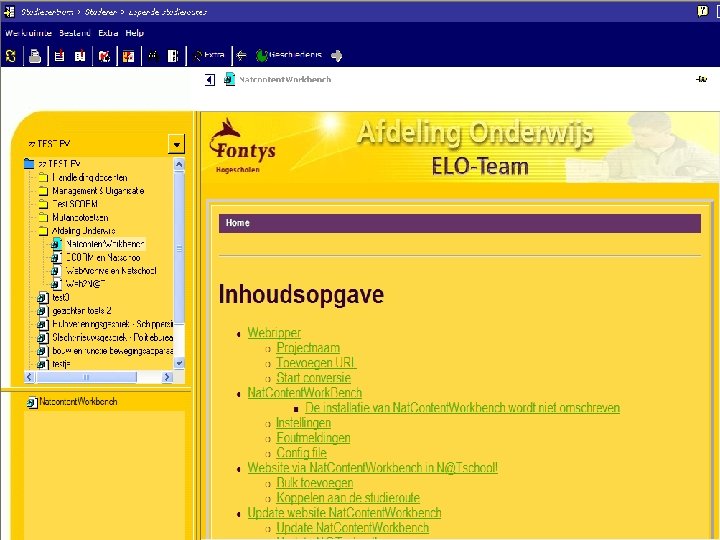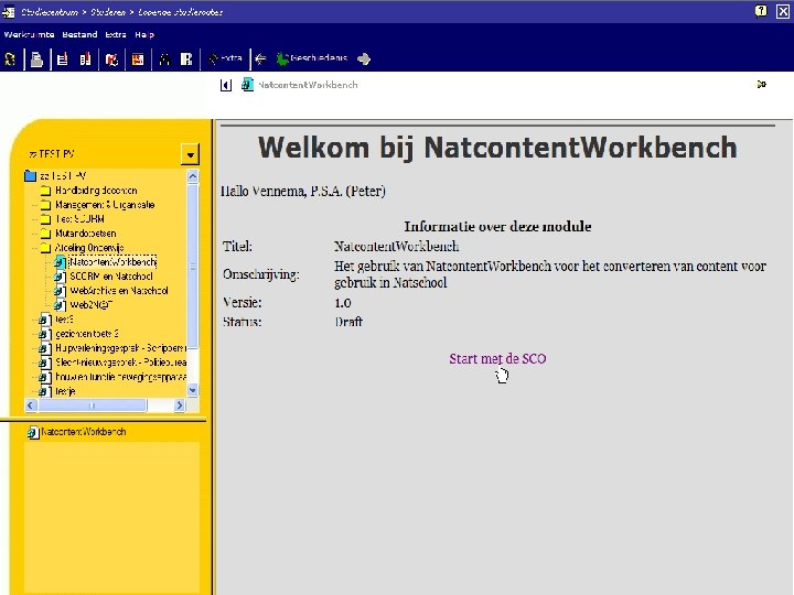 Gebruikte software: Van Word naar HTML: Word 2 Web – Solution. Soft http: //www. solutionsoft. com/ Van HTML naar SCORM: Reload http: //www. reload. ac. uk/index. html