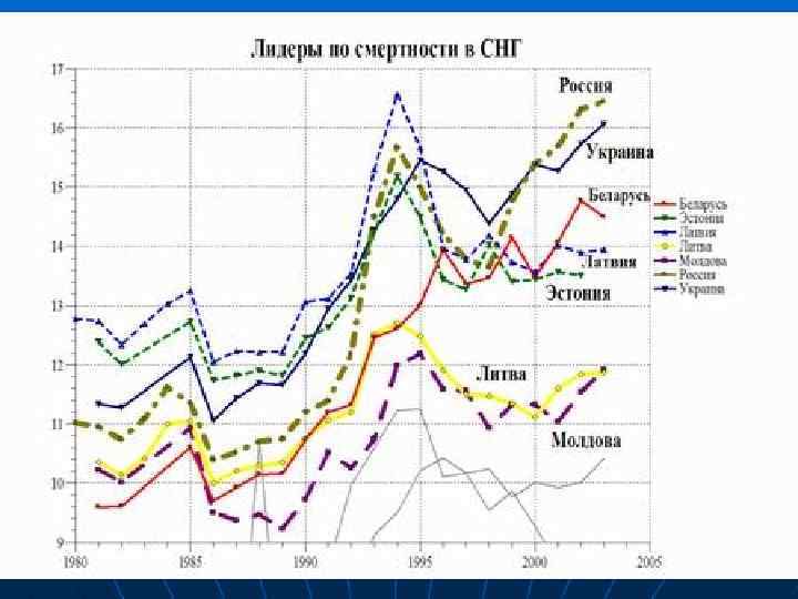 Общий коэффицие нт рождаемос ти, ‰ Страна Общий коэффициент смертности, ‰ Общий коэффициент естественного прироста, ‰ Суммарный коэффициент рождаемости Латвия 8 14 -6 1, 4 Эстония 9 14 -5 1, 3 Болгария 9 14 -5 1, 45 Украина 10 14 -4 1, 4 Россия 9 13 -4 1, 35 Венгрия 10 14 -4 1, 7 Белорусия 10 1 -3 1, 5 Германия 9 11 -2 1, 3 Чехия 9 11 -2 1, 4 Литва 10 12 -2 1, 7 Румыния 10 12 -2 1, 4 Италия 9 10 -1 1, 2 Греция 9 10 -1 1, 4 Словения 9 10 -1 1, 2 Швеция 10 11 -1 1, 4 Таблица 1 Страны Европы с отрицательным естественным приростом населения