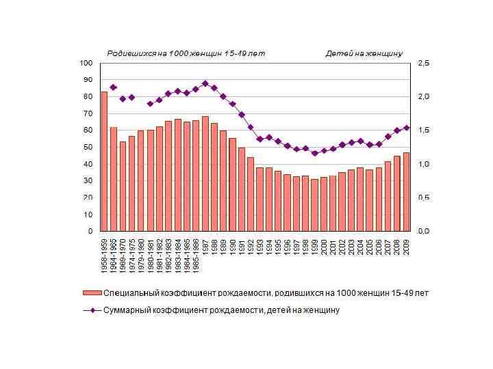 Специальный коэффициент рождаемости – число рождений в среднем на 1000 женщин репродуктивного возраста (15 -49 лет)