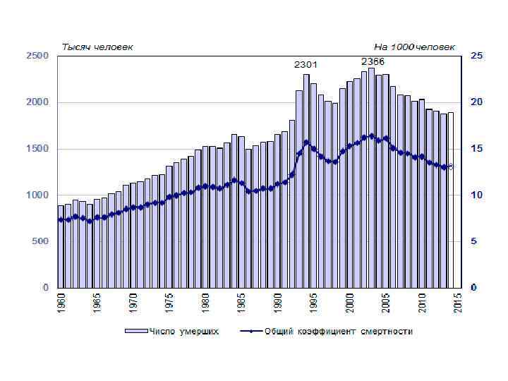 Общий коэффициент смертности - среднее число смертей, приходящихся на 1000 населения в данном календарном периоде к средней численности населения.