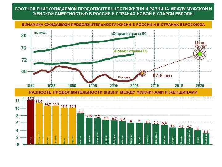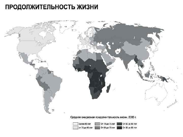 Средняя продолжительность жизни, (лет), 2015 г. Весь мир женщины – 73 лет мужчины – 69 лет Развитые страны женщины – 82 лет мужчины – 76 лет Развивающиеся страны женщины – 72 лет мужчины – 68 лет Лесото женщины – 46 лет мужчины – 43 лет Япония женщины – 87 лет мужчины – 80 лет Россия женщины – 76 лет мужчины – 65 лет