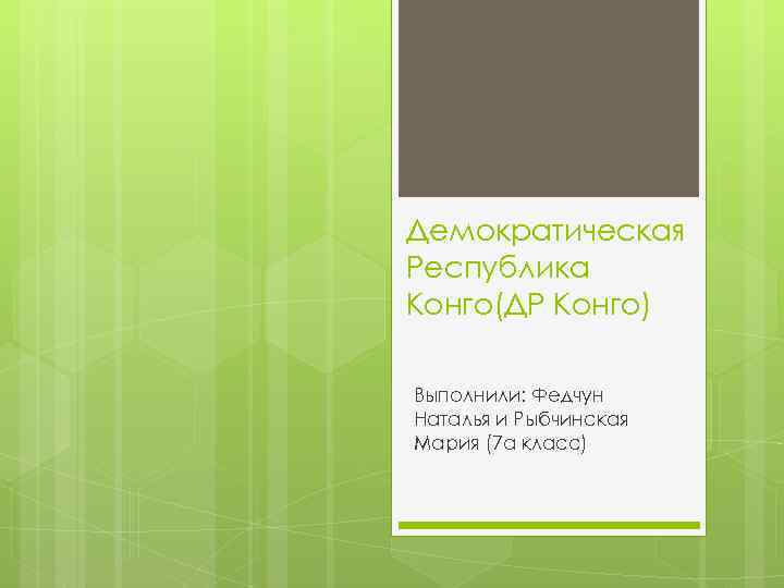 Демократическая Республика Конго(ДР Конго) Выполнили: Федчун Наталья и Рыбчинская Мария (7 а класс)
