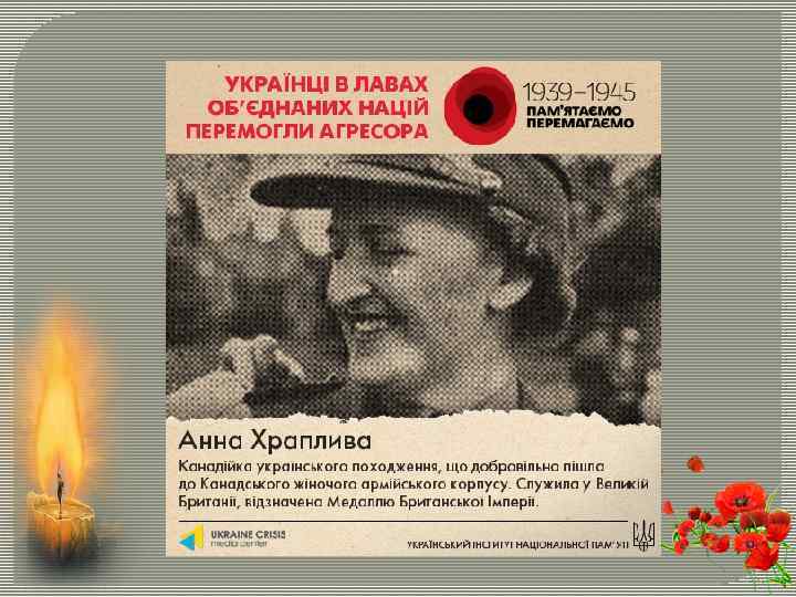 В полях Фландрии В полях Фландрії маки все ж розквітли Серед хрестів стоячих з ряду в ряд Де ми поховані, так високо у небі щебечуть жайворонки Вони не бачили ні стрільб, ні вибухів , ні смерті Ми мертві! Ще зовсім нещодавно ми жили відчули ми росу, побачили світанок Любили ми і нас любили А зараз ми всі полягли В полях Фландрії Не зупиняйтесь Ви у боротьбі І факел Ви візьміть із наших рук Несіть високо, не впустіть, не зрадьте нас, я вас прошу Не зможем заспокоїтись Хоча маки все ж таки ростуть в полях Фландрії