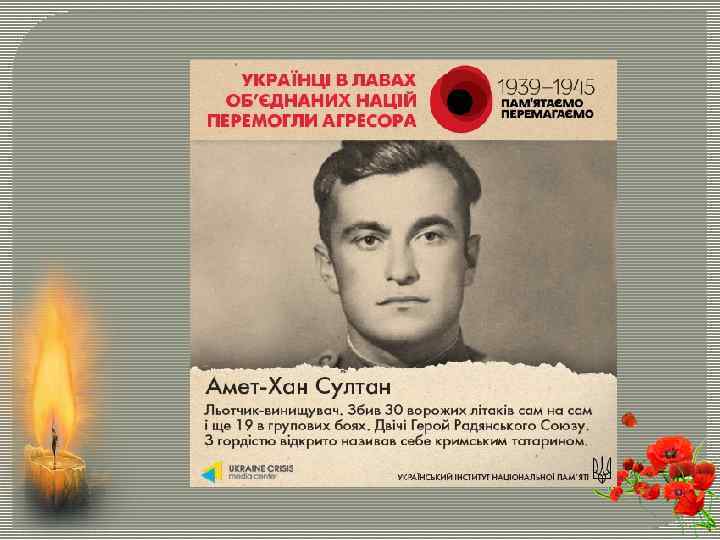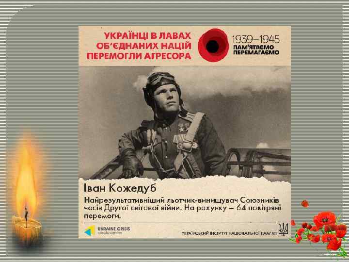 Україна зробила значний внесок у перемогу над нацизмом та союзниками Німеччини. На боці Об’єднаних Націй воювали українці у складі армій Великої Британії та Канади (45 тис. осіб), Польщі (120 тис. ), СРСР (більше 6 млн), США (80 тис. ) і Франції (6 тис. ), а також визвольного руху в самій Україні (100 тис. в УПА) – разом 7 млн осіб. Понад 2, 5 млн українців були нагороджені радянськими та західними медалями та орденами, більше 2 тис. стали Героями Радянського Союзу, з них 32 – двічі, а найкращий ас союзної авіації Іван Кожедуб – тричі.