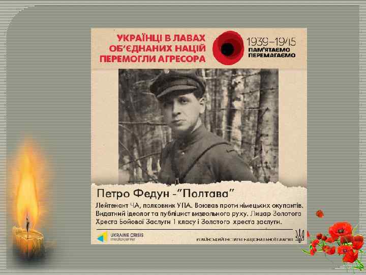 Для України ІІ світова війна – національна трагедія, під час якої українці, позбавлені власної державності, змушені були воювати за чужі інтереси і вбивати інших українців. З різних причин на німецькому боці воювало до 250 тис. українців та до 50 тис. було мобілізовано до армій союзників Третього Райху.