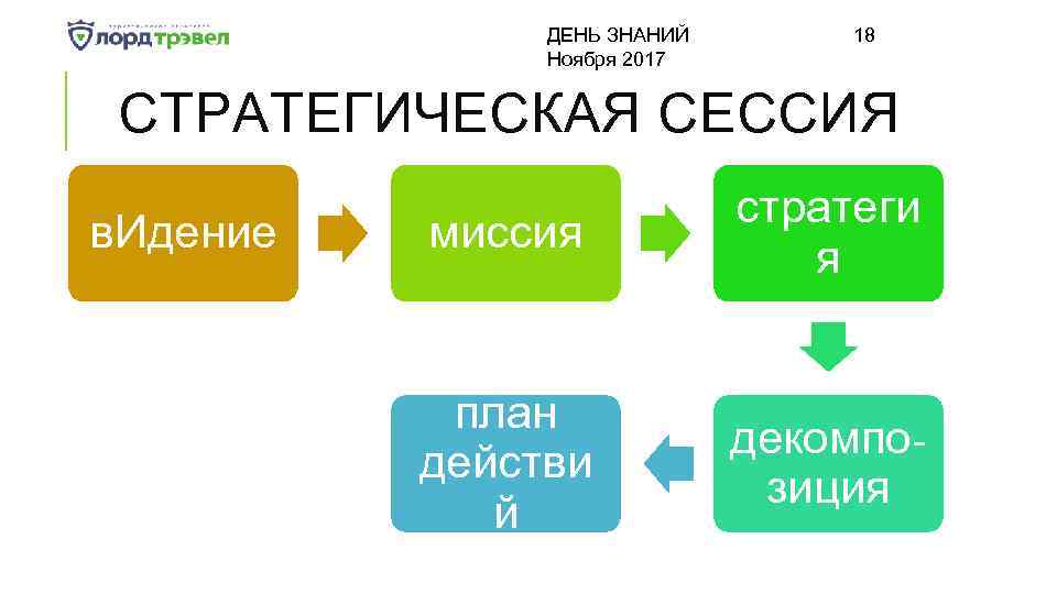 ДЕНЬ ЗНАНИЙ Ноября 2017 18 СТРАТЕГИЧЕСКАЯ СЕССИЯ в. Идение миссия стратеги я план действи й декомпозиция